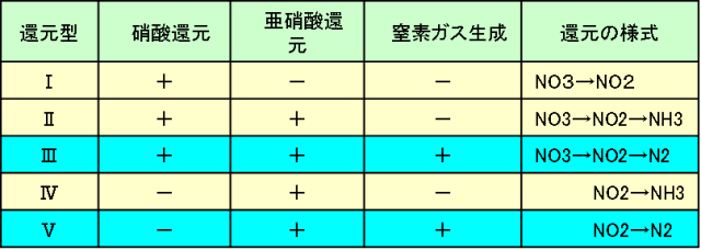 海洋性脱窒細菌には次表に示すように、五つの還元型があることが知られています。