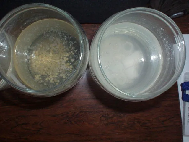 対照区に比較して心持ち濁りが感じられる程度で、明らかな分解を感じ取るまでには至っていません。
