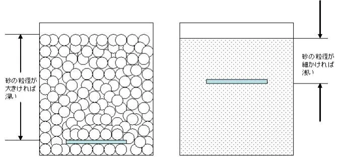 従って底砂の種類や粒径によって、埋める「最適の深さ」が異なるであろうことは皆さんにもご理解いただけるものと思います。