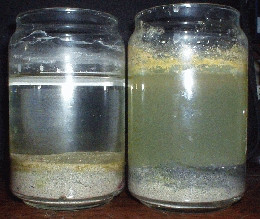 実際の水槽では微妙な水流により底砂の内部にも酸素が供給されていますから、水流のないコップの中では硫酸還元寸前であったものが実際の水槽ではいくぶん好気的になりますので、程良い「やや嫌気」のエリアとなります。