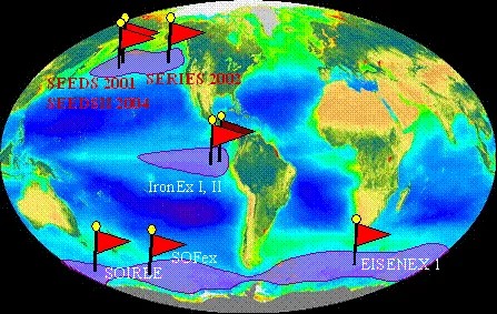 「鉄仮説」を検証するために実際の海洋に鉄を散布して植物プランクトンの増殖を計測するという実験が1993年から2004年にかけてのべ10回各国の研究機関によって行われました。