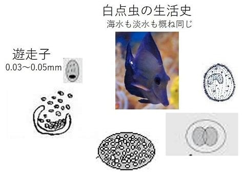 淡水と海水では白点虫の種類は違うのですが、その生活史は概ね共通しています。